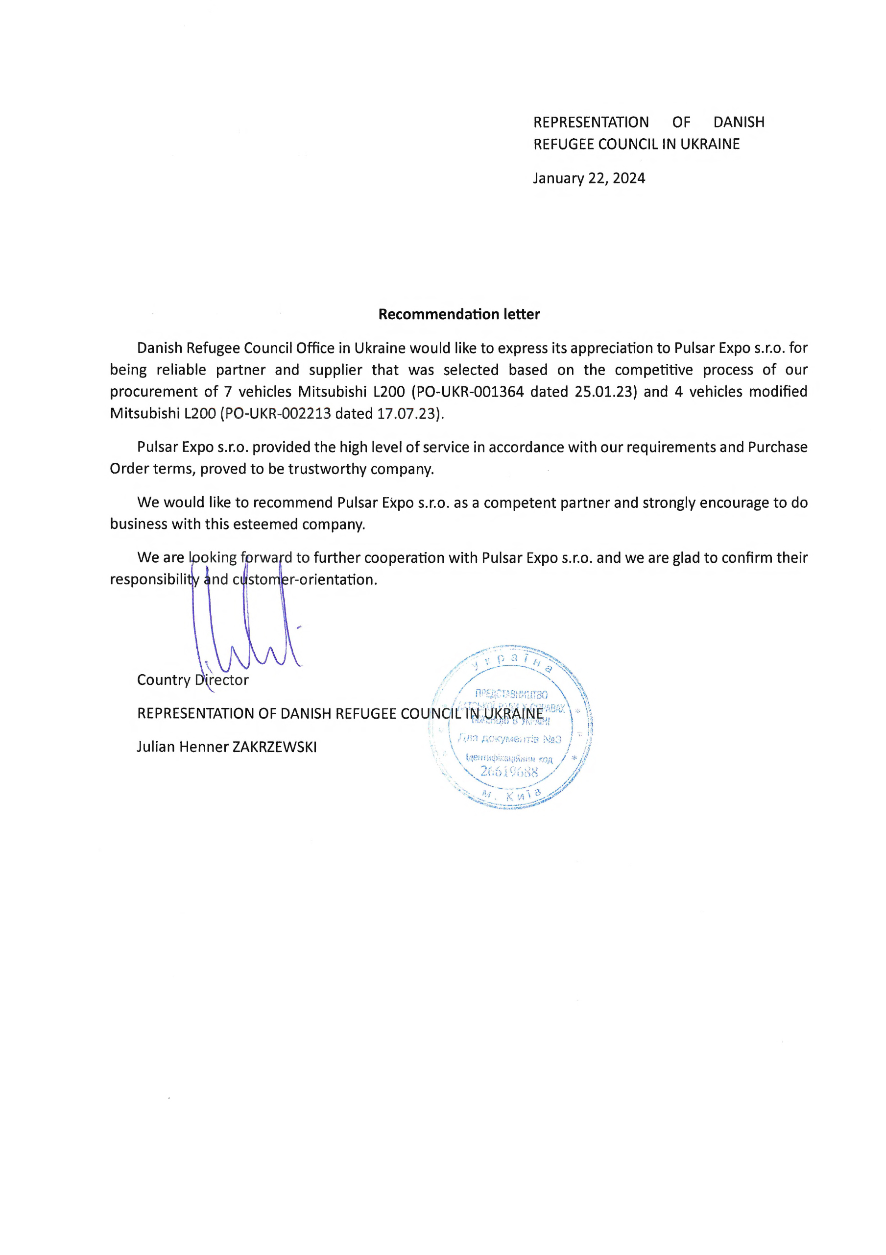 - Participation in fully transparent tender procedures lead by different organization taking into accord different rules and law of procurement